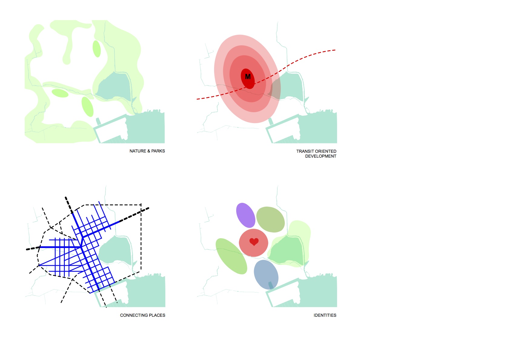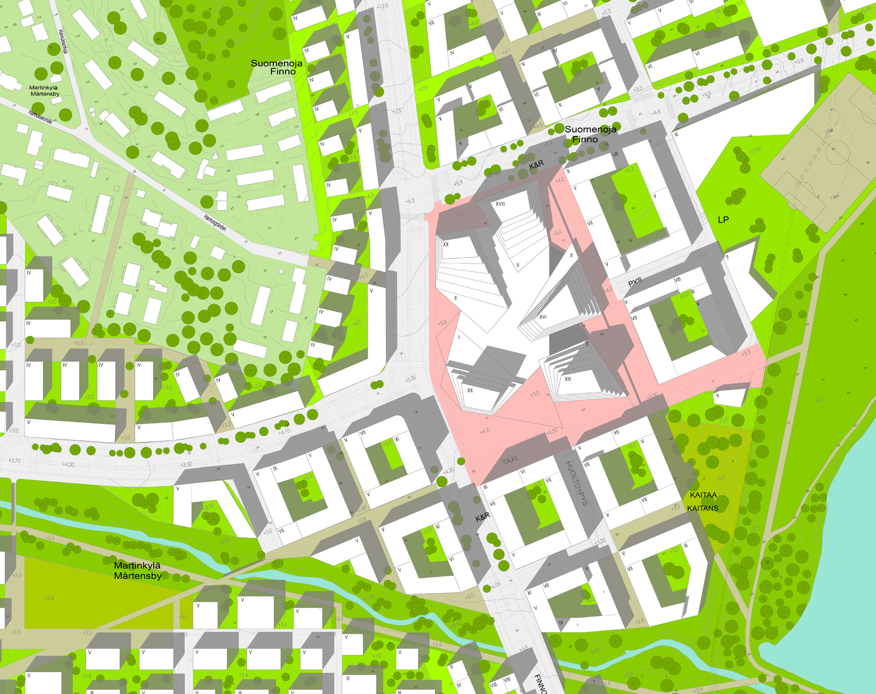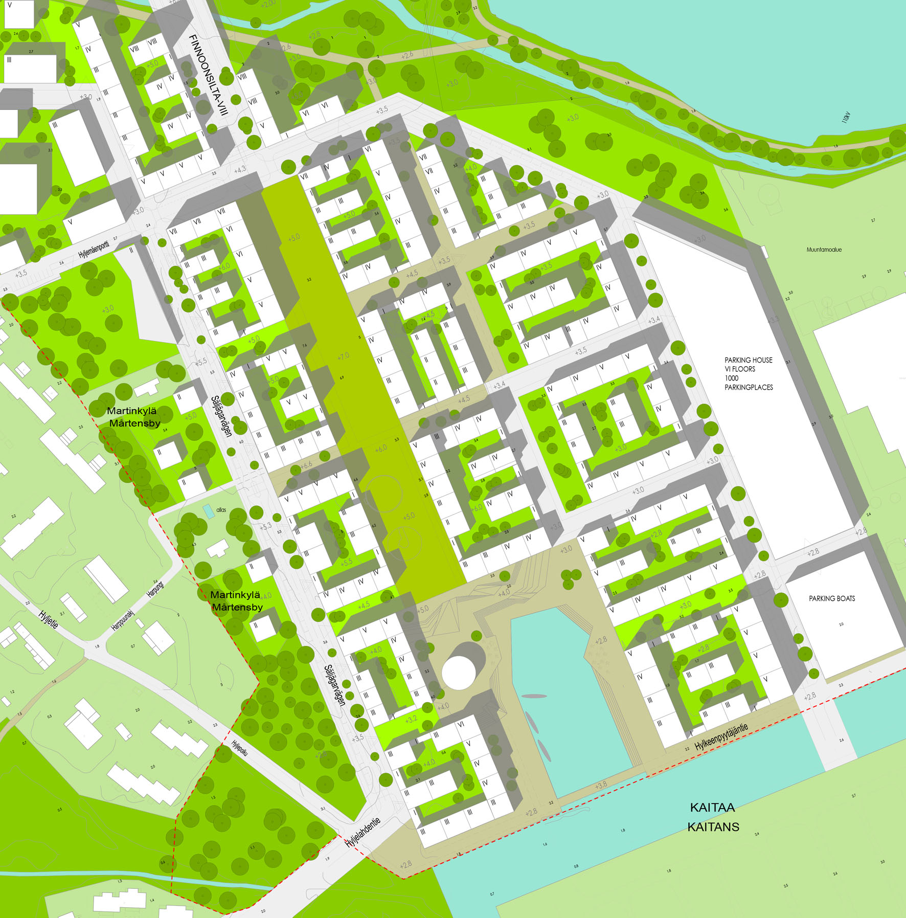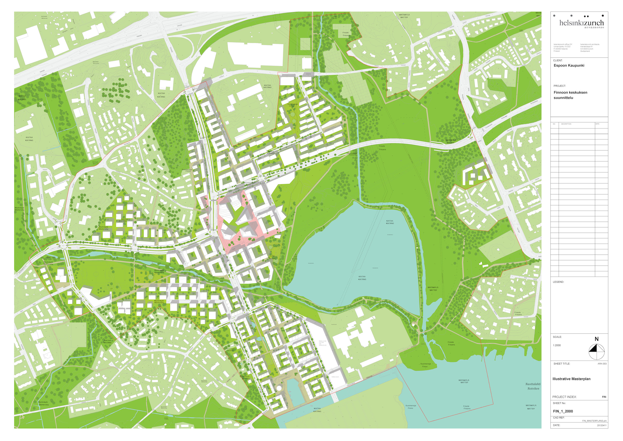 Das neue Öko-Quartier um die geplante U-Bahnstation Finnoo wird zukünftig Platz für 14 000 Einwohner und 6.000 Arbeitsplätze bieten. Finnoo liegt direkt am Meer und grenzt an ein Naturschutzgebiet. Dieser Umstand, ein angrenzendes Kraft-werk und weitere Parameter bilden ein komplexes Gebilde von Randbedingungen für die Entwicklung des Gebietes. Neben hohen ökologischen Zielen wurde eine Reihe von Entwurfsprinzipen als massgebend für die weiteren Planungsschritte definiert: 1) Bezüge zum Meer und zur Natur stellen zentrale Elemente der Identität des Quartiers dar. 2) Die U-Bahnstation ist der funktionelle und strukturelle Ausgangspunkt für die Entwicklung des neuen Stadtteils. 3) Das Gebiet wird mit der Umgebung sehr gut vernetzt. 4) Der Stadtteil setzt sich aus einer Reihe von Quartieren zusammen, die jeweils eine eigene urbane Identität entwickeln. 5) Die Nachbarschaften de-finieren sich durch unterschiedliche Bauty-pologien und Freiraumkonstellationen.