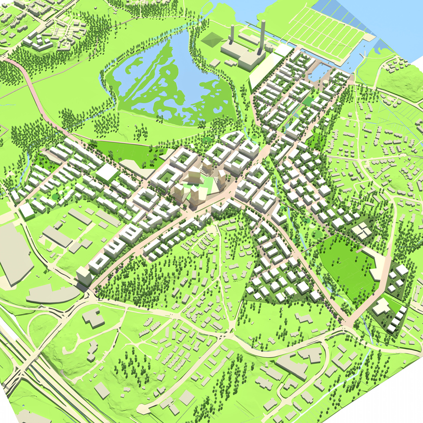 Das neue Öko-Quartier um die geplante U-Bahnstation Finnoo wird zukünftig Platz für 14 000 Einwohner und 6.000 Arbeitsplätze bieten. Finnoo liegt direkt am Meer und grenzt an ein Naturschutzgebiet. Dieser Umstand, ein angrenzendes Kraft-werk und weitere Parameter bilden ein komplexes Gebilde von Randbedingungen für die Entwicklung des Gebietes. Neben hohen ökologischen Zielen wurde eine Reihe von Entwurfsprinzipen als massgebend für die weiteren Planungsschritte definiert: 1) Bezüge zum Meer und zur Natur stellen zentrale Elemente der Identität des Quartiers dar. 2) Die U-Bahnstation ist der funktionelle und strukturelle Ausgangspunkt für die Entwicklung des neuen Stadtteils. 3) Das Gebiet wird mit der Umgebung sehr gut vernetzt. 4) Der Stadtteil setzt sich aus einer Reihe von Quartieren zusammen, die jeweils eine eigene urbane Identität entwickeln. 5) Die Nachbarschaften de-finieren sich durch unterschiedliche Bauty-pologien und Freiraumkonstellationen.