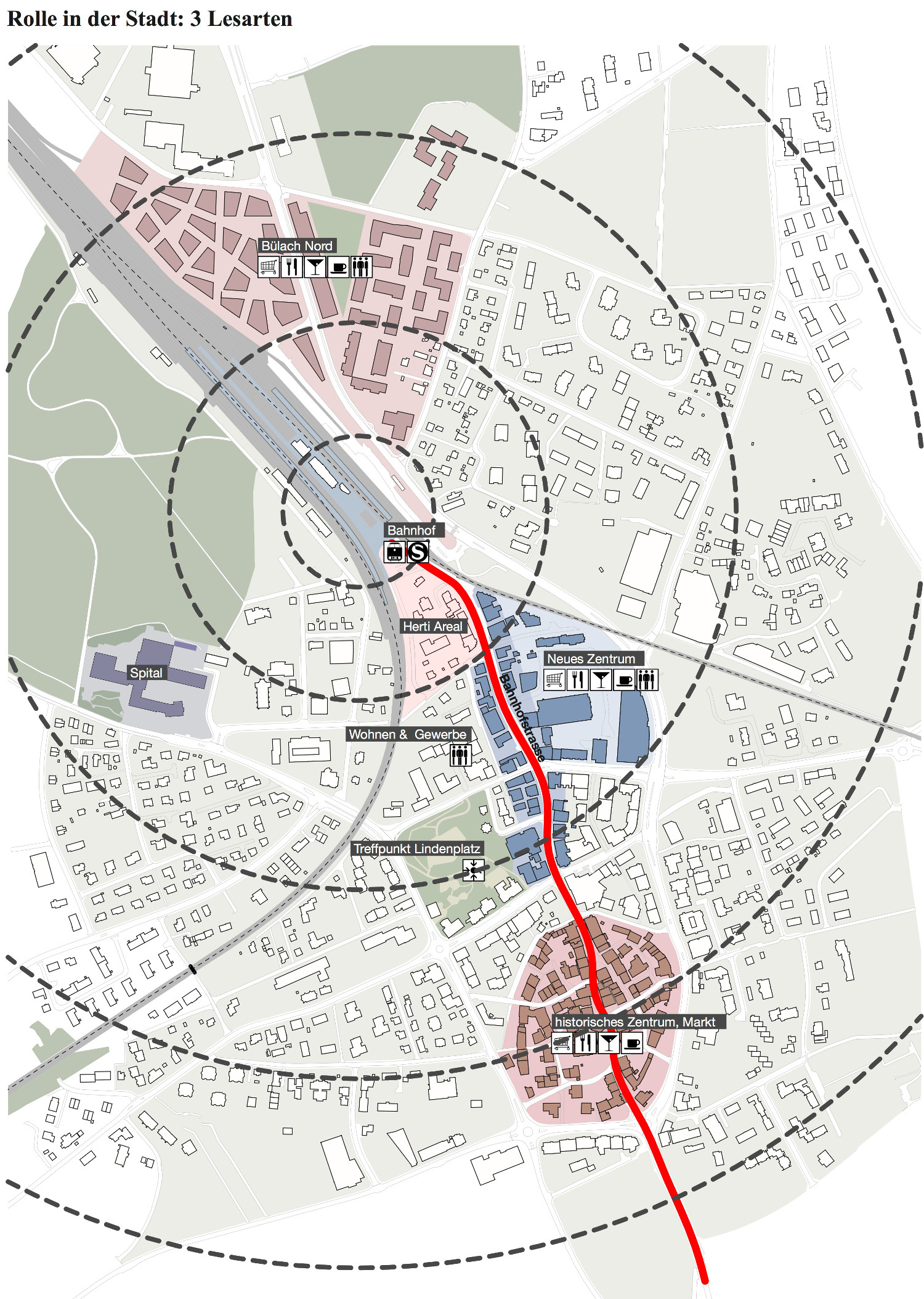 The ‘Herti’-area between the station and the town plays a key role for Bülach. In a two stage process the city awarded our proposal “Bülach kommt zum Bahnhof” (“Bülach arrives at the station”) the third prize.
