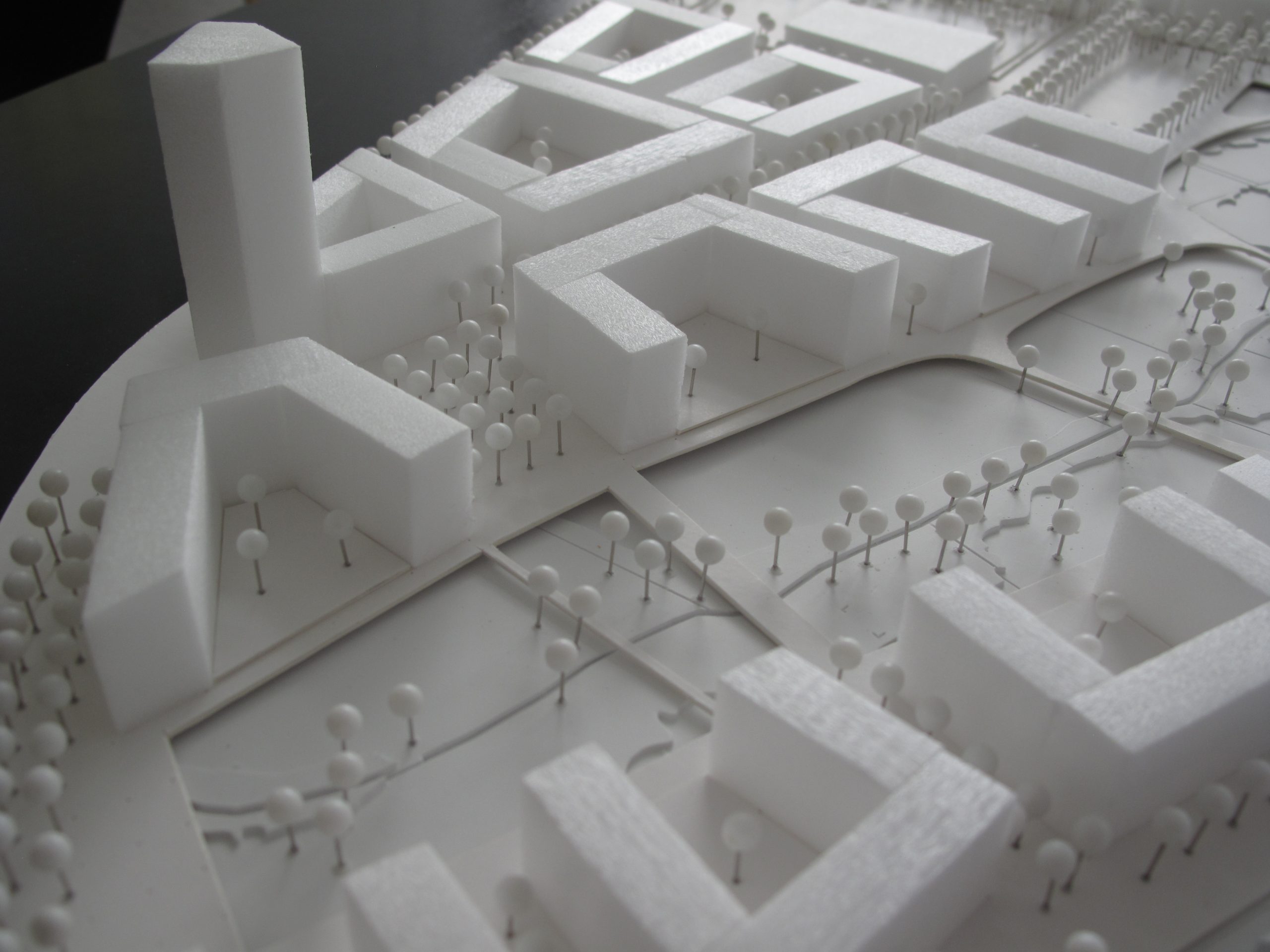 A strong focus was on the connection of the project area to the adjacent districts, as it is surrounded by strongly cutting traffic axes. Due to the given noise exposure the concept reacts with longitudinal buildings and appropriate use of topography and vegetation towards the adjacent streets.