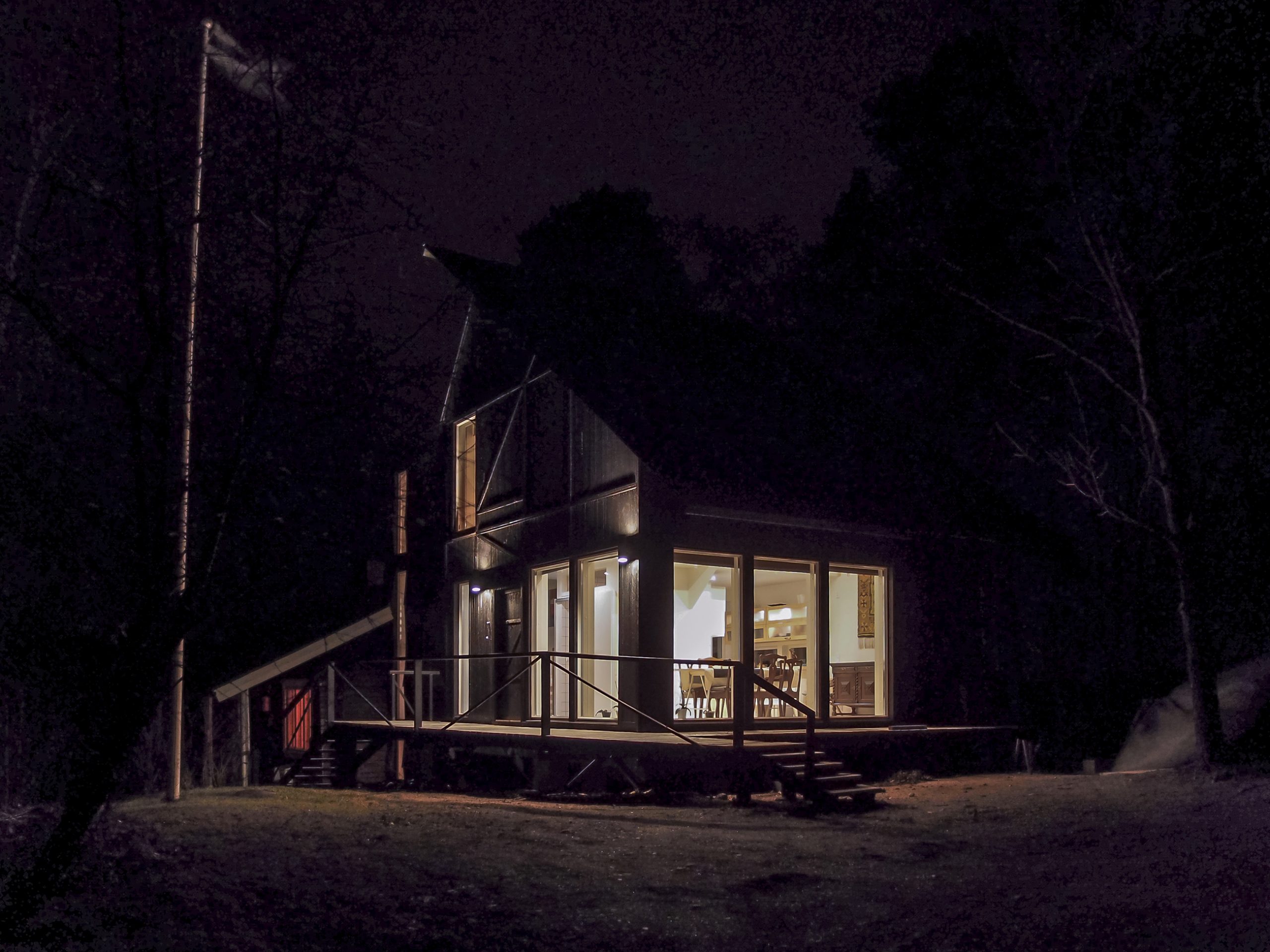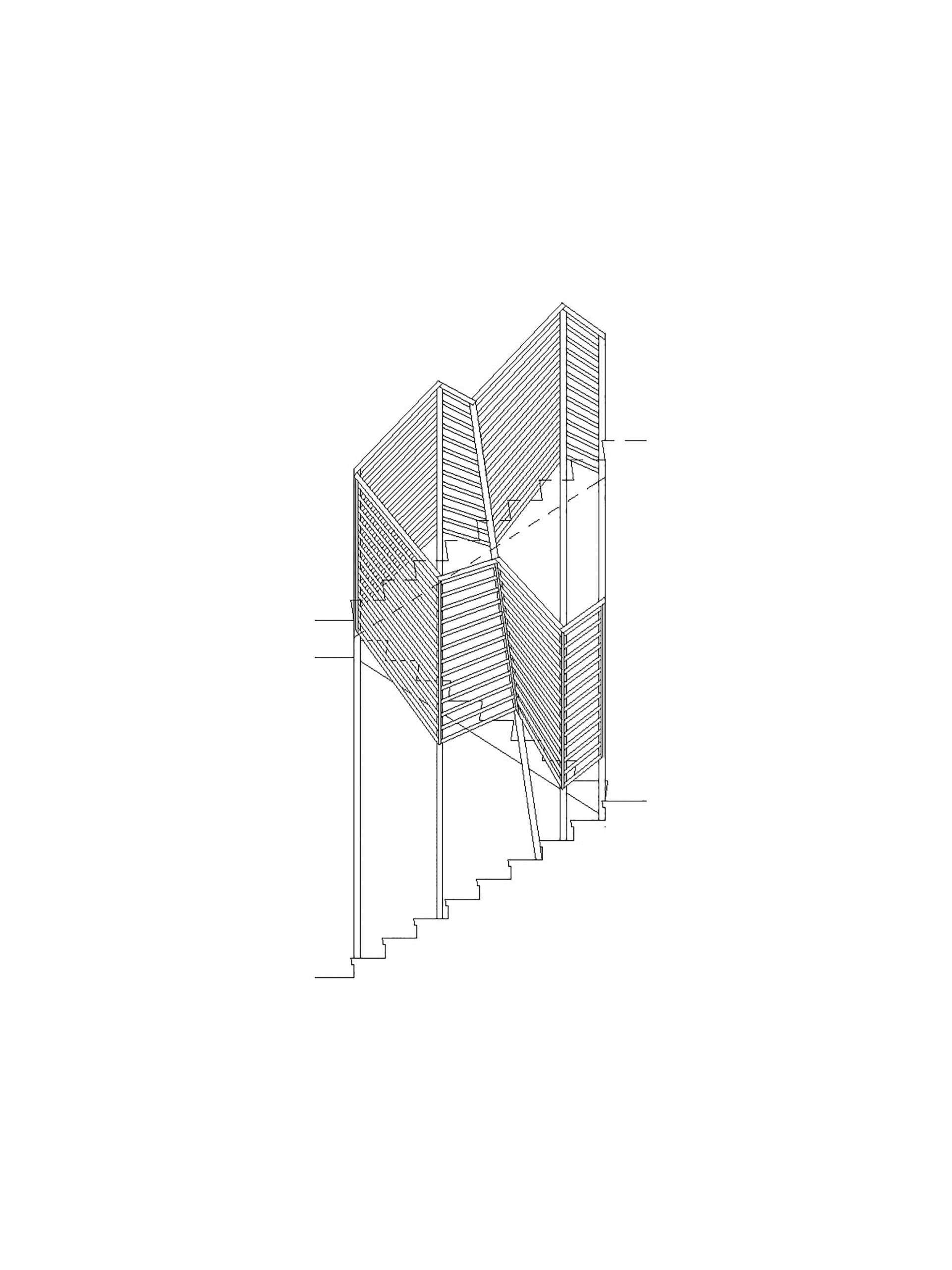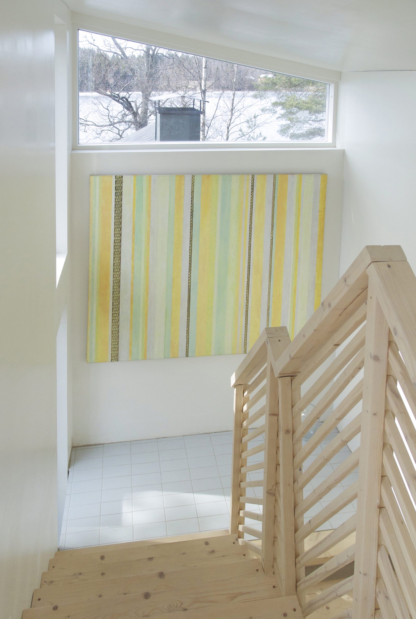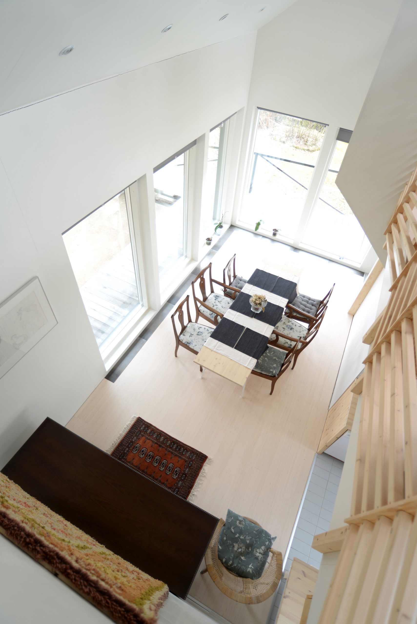 A log building, built in 1951, has been extended to create a new residential unit. The name of the house refers to the desired atmosphere and dynamism. The Japanese garden surrounding the building is due to be completed in the near future. The design concept was a four-storey-high building with a very steep roof plane. The roof is indeed like the slash of a samurai sword. Another aesthetic goal was to give an architectural interpretation of the mind-set of the so-called Helsinki School of photography. The project involves an innovative building technique. The roof was first built in the horizontal plane and then, using huge hinges, gradually turned upright. This removed the need to climb on the roof. The interior balustrades are an expressionistic artwork. A variety of unique uses of wood have been experimented with in the facades, such as scaly planks that curve longitudinally. Part of the facades has been subdivided into cassettes in accordance with the bearing structure. The facade boarding was made from the scaffolding used during the building construction by sawing the planks on site into scantlings.